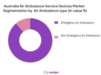 The Australian air ambulance market is segmented into emergency and non-emergency air ambulance services. Emergency air ambulance services have a dominant market share due to the increased frequency of critical medical incidents, such as accidents, heart attacks, and strokes, which require fast and efficient transportation. The demand for these services is growing due to higher incidences of severe trauma in remote regions, driving hospitals and insurance companies to invest heavily in air ambulance services. Emergency services also benefit from government contracts and public-private partnerships, further strengthening their position in the market.