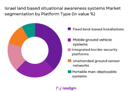 Israel land based situational awareness systems market is segmented by platform type into fixed installations, mobile ground vehicle systems, portable man-deployable systems, unattended ground sensor networks, and integrated border security platforms. Recently, fixed land-based installations have a dominant market share due to their continuous operational availability, high sensor payload capacity, and integration with national command infrastructure. These platforms are preferred for long-term border monitoring and infrastructure protection because they support multi-sensor fusion and stable power supply. Their dominance is also driven by lower lifecycle disruption, centralized maintenance, and suitability for layered defense architectures supporting persistent situational awareness requirements.Â
