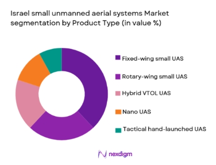 Israel small unmanned aerial systems market is segmented by product type into fixed-wing small UAS, rotary-wing small UAS, hybrid VTOL UAS, nano UAS, and tactical hand-launched UAS. Recently, fixed-wing small unmanned aerial systems have held a dominant market share due to extended endurance, broader operational range, and suitability for intelligence, surveillance, and reconnaissance missions. These platforms are preferred for border monitoring, maritime patrol, and long-duration overland operations where persistent coverage is required. Strong domestic manufacturing expertise, proven battlefield performance, and continuous payload upgrades support adoption. Fixed-wing systems also integrate advanced sensors and secure communications, aligning with network-centric warfare requirements. Their cost efficiency over long missions and compatibility with existing command infrastructure further reinforce demand across defense and homeland security users.Â