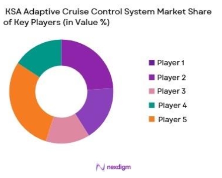 The market in KSA is highly competitive, with major international automotive brands such as Toyota, BMW, and Mercedes-Benz leading the way in terms of implementing ACC systems in their vehicles. These companies are complemented by emerging regional players and local distributors that integrate aftermarket solutions into vehicles. Companies in the KSA market are striving to differentiate themselves through the inclusion of additional safety features, better integration with existing car systems, and enhanced user experiences via smart technologies like IoT.Â