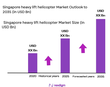 The Singapore heavy lift helicopter market is valued at USD ~billion, driven by the increasing demand for advanced transportation solutions in industries such as defense, construction, and oil and gas. Government investments in defense and infrastructure projects, coupled with the need for lifting heavy loads in challenging environments, have significantly contributed to the market’s growth. The market’s growth is further fueled by innovations in helicopter technology, offering enhanced performance and cost-efficiency.