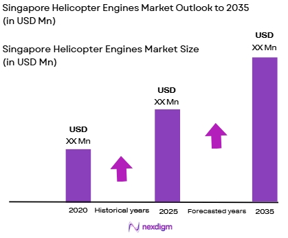 The Singapore helicopter engines market is valued at approximately USD ~million in 2024. The market growth is primarily driven by the country’s expanding defense sector and increasing demand for civilian helicopter services. The significant investments in military helicopter fleets, as part of defense modernization, and the growing use of helicopters in commercial sectors like tourism, emergency medical services, and offshore support, contribute to the demand for advanced helicopter engines. Furthermore, technological advancements in engine efficiency and fuel-saving technologies continue to bolster the market.Â
