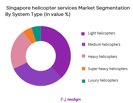 The Singapore helicopter services market is segmented into light helicopters, medium helicopters, heavy helicopters, super-heavy helicopters, and luxury helicopters. Among these, the light helicopters segment holds the dominant market share. This is largely due to their cost-effectiveness, flexibility, and widespread use in short-distance travel, making them the preferred choice for both business and tourism sectors. Light helicopters are also favored for medical emergencies, offering fast, efficient, and relatively affordable air transport solutions for emergency medical services.Â
