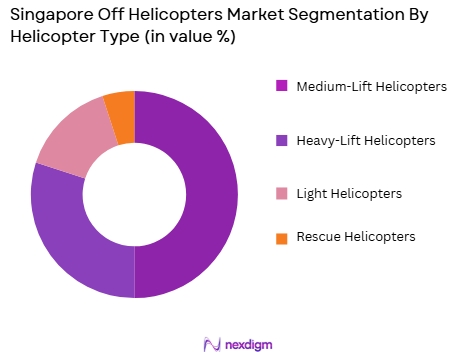 The Singapore offshore helicopters market is segmented by helicopter type into medium-lift helicopters, heavy-lift helicopters, light helicopters, and rescue helicopters. In 2024, medium-lift helicopters dominate the market, as they are the most versatile for offshore operations. These helicopters can transport a wide range of personnel and cargo, making them highly suitable for various offshore applications, including oil and gas exploration and renewable energy installations. Medium-lift helicopters are also popular due to their fuel efficiency, affordability, and operational range, making them the go-to choice for offshore transport.Â