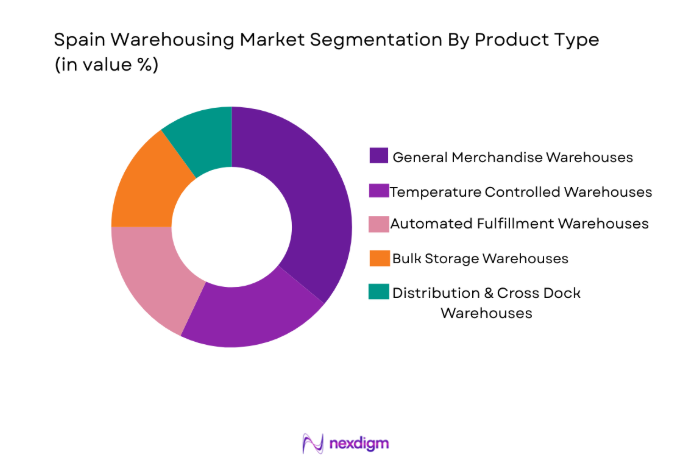 Spain Warehousing Market is segmented by product type into general merchandise warehouses, temperature-controlled warehouses, automated fulfillment warehouses, bulk storage warehouses, and distribution & cross-dock warehouses. Recently, general merchandise warehouses has a dominant market share due to factors such as strong retail distribution demand, high consumer goods inventory requirements, and the widespread presence of retail distribution centers across Spain. Large national retailers and third-party logistics operators rely heavily on high-capacity general storage warehouses for inventory consolidation and order distribution. These facilities support large volumes of packaged consumer goods including electronics, apparel, household products, and packaged food items. Their operational flexibility allows logistics providers to manage both store replenishment and online order fulfillment through integrated warehouse management systems and nationwide distribution networks.Â