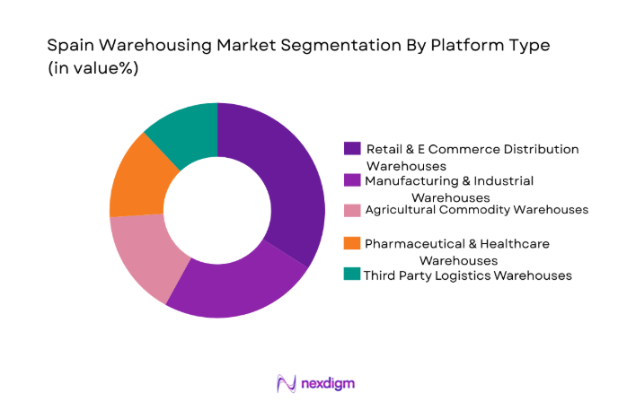 Spain Warehousing Market is segmented by platform type into retail & e-commerce distribution warehouses, manufacturing & industrial warehouses, agricultural commodity warehouses, pharmaceutical & healthcare warehouses, and third-party logistics warehouses. Recently, retail & e-commerce distribution warehouses has a dominant market share due to factors such as rapid growth in digital retail transactions, expansion of fulfillment infrastructure, and increasing consumer demand for fast parcel delivery services. Large e-commerce platforms operate centralized fulfillment hubs near major metropolitan areas to accelerate order processing and distribution. Logistics providers also establish regional distribution centers to connect online retail warehouses with urban delivery networks. Continuous expansion of omnichannel retail logistics systems further strengthens the operational importance of these facilities within Spain’s national warehousing infrastructure.Â