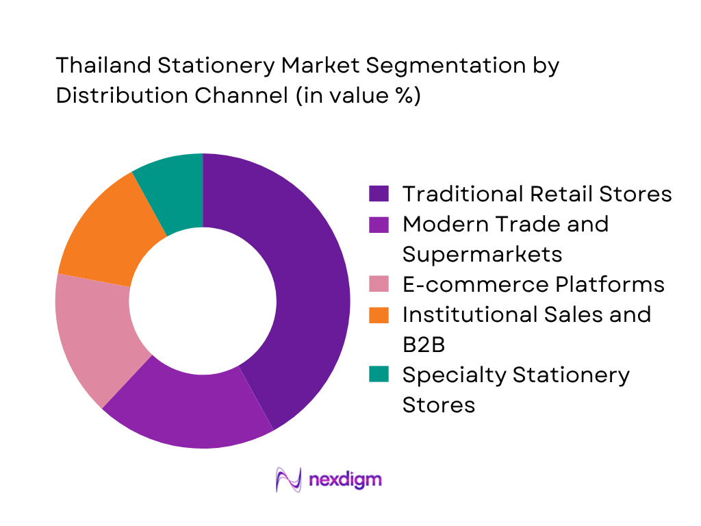Traditional retail stores continue to dominate distribution due to widespread availability and strong relationships with local suppliers and schools. However, modern trade and supermarkets are gaining traction in urban areas, offering organized retail experiences and product variety. E-commerce platforms are expanding rapidly, driven by convenience and increasing digital adoption. Institutional sales remain significant, particularly for bulk procurement by schools and offices. Specialty stationery stores cater to niche demand for premium and imported products, contributing to diversification in channel dynamics and enhancing consumer access across different price segments.