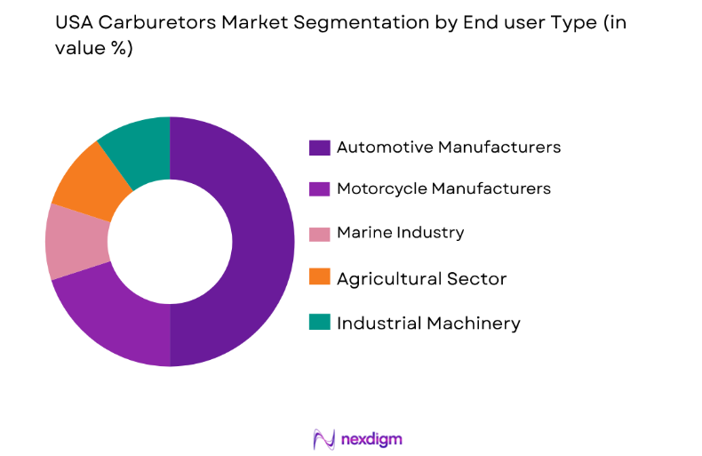 The automotive sector has the dominant market share within the end user segment of the carburetors market in the USA. This dominance is attributed to the growing production of vehicles and the increasing demand for high-performance automotive engines. Additionally, the automotive industry’s focus on engine efficiency and reduced fuel consumption has driven the adoption of carburetors in both OEM and aftermarket sectors. The rise of car enthusiasts seeking customized performance vehicles further propels the demand for carburetors in the USA, particularly in the sports car and vintage vehicle market.Â